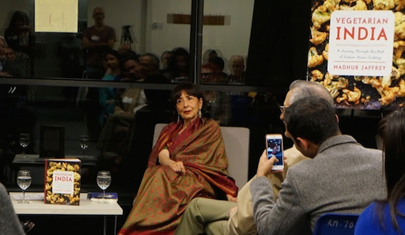 | The Festival kicked off with veteran cookbook maven, actor, and director Madhur Jaffrey. Madhur's latest book, Vegetarian India, is a kitchen essential for vegetable enthusiasts and home cooks everywhere. This award-winning food writer and actress has won numerous accolades in theater and film, as well as for her food. Six of her cookbooks have won the James Beard Award for Food and Beverage in America. |